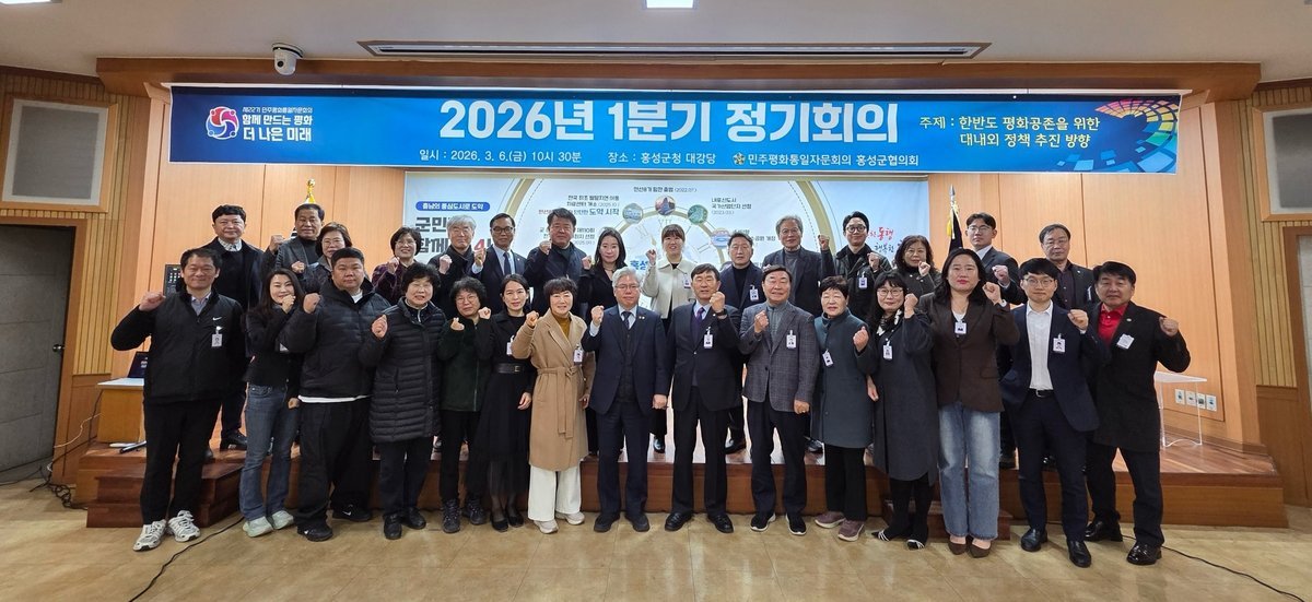 [충청25시] 홍성군은 민주평화통일자문회의 홍성군협의회가 지난 6일 홍성군청 대강당에서 자문위원 40명이 참석한 가운데‘한반도 평화공존을 위한 대내외 정책 추진방향’을 주제로‘2026년 1분기 정기회의’를 개최했다고 밝혔다.