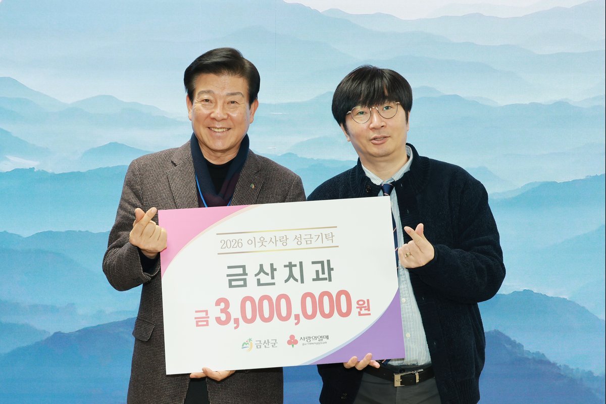 금산치과의원은 이웃돕기 성금 300만원을 기탁했다.