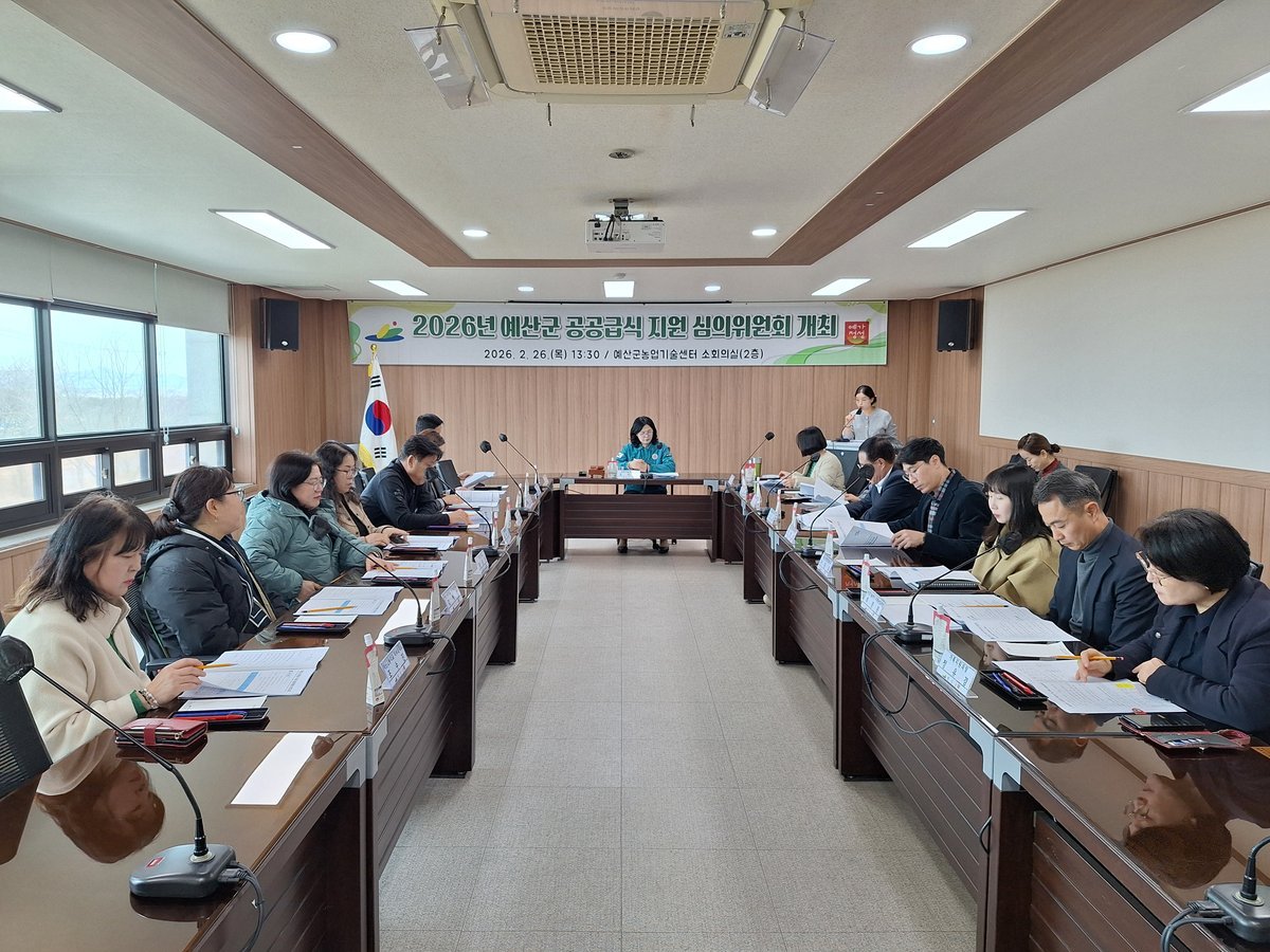 [충청25시] 예산군은 지난 26일 농업기술센터 회의실에서 2026년도 예산군 공공급식 지원 심의위원회 를 개최했다고 밝혔다.