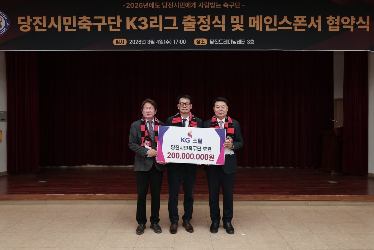 오성환 구단주는 “2025년 시민축구단이 K4리그 우승이라는 큰 성과를 거두며 당진시 체육의 위상을 한층 높였다”며 “어려운 상황 속에서도 변함없이 응원과 지원을 아끼지 않는 메인스폰서 KG스틸과 오피셜 스폰서 대표분들께 깊은 감사를 드린다”고 말했다.