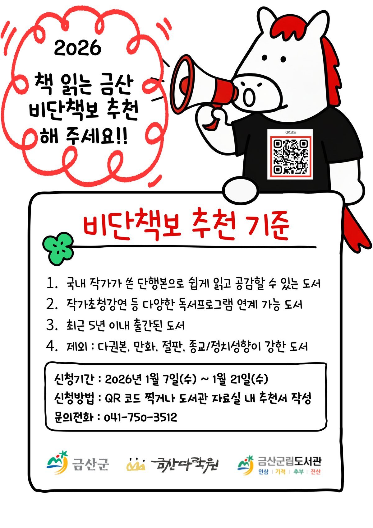 [충청25시] 금산군은 군민과 함께 만드는 독서문화 확산을 위해 2026년 책 읽는 금산 비단책보 선정을 위한 군민 추천 접수에 나선다.