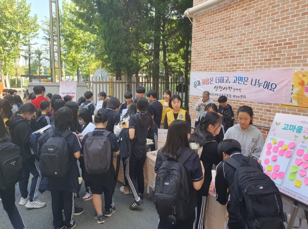 정신건강의 날을 맞이해 마련된 이번 캠페인은 대전서부교육지원청 위센터의 협조를 받아 위클래스 주관으로 생명존중동아리 학생 11명과 함께 진행했다.