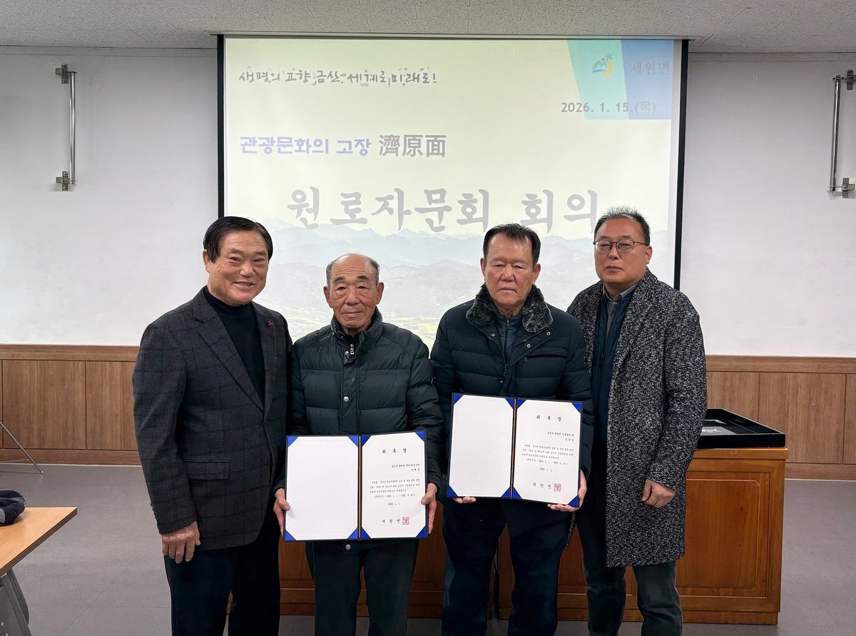 [충청25시] 금산군 제원면은 지난 15일 제원면행정복지센터 회의실에서 제2기 제원면 원로자문회 신규 위원 2명을 위촉했다.