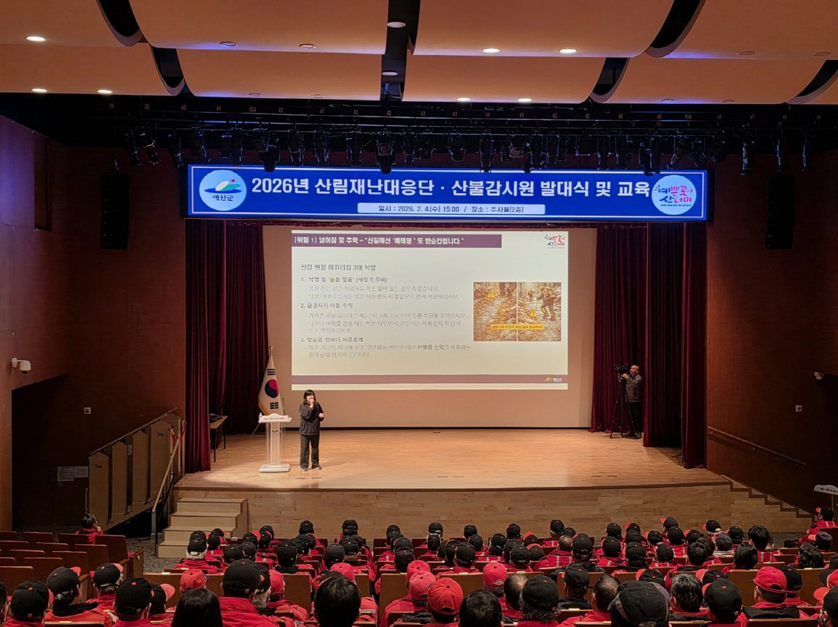 [충청25시] 예산군은 산불 등 산림재난에 선제적으로 대응하기 위해 지난 4일 추사홀에서 ‘2026년 산림재난대응단 및 산불감시원 발대식’을 개최하고 본격적인 산불 예방·대응 활동에 돌입했다.