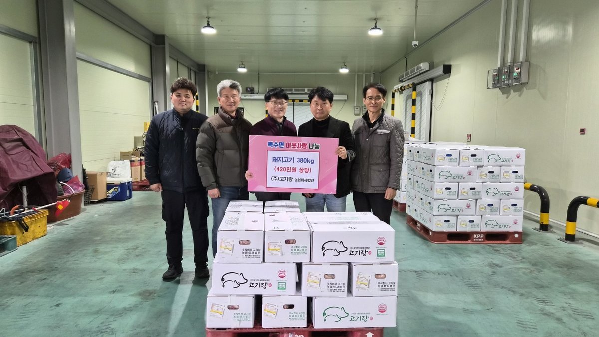 [충청25시] 금산군 복수면에 소재한 ㈜고기랑 농업회사법인은 지난 11일 설 명절을 맞아 지역의 어려운 이웃을 위한 이웃사랑을 실천하며 400만원 상당 돼지고기를 기탁했다.