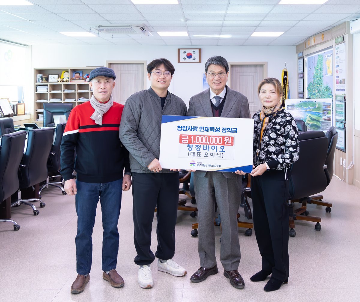 [충청25시] 청양군 지역 축산사료 생산업체인 청정바이오가 지역 인재 육성을 위한 장학금 기탁에 동참하며 훈훈한 온기를 전했다.