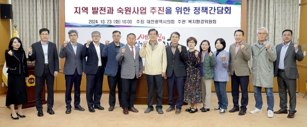 [충청25시] 대전시의회 복지환경위원회는 이한영 의원 주재로 23일 의회 소통실에서 ‘지역 발전과 숙원사업 추진을 위한 정책간담회’를 개최했다.