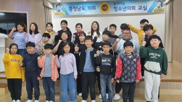 [충청25시] 충남도의회는 23일 천안 도장초등학교 학생 23명과 지도교사 3명이 참여한 가운데 ‘찾아가는 청소년 의회교실’을 개최했다.