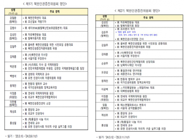 강철환, 김범수, 김성민 대표는 제1기 북한인권증진위원회로 위촉됐으며 김성민 대표는 2기 위원으로도 위촉됐다.
