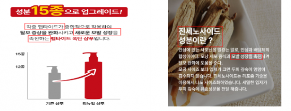 특히 일부 제품은 ‘새로운 모발성장 촉진’, ‘모발굵기 개선’, ‘탈모방지’, ‘탈모예방’, ‘염증개선·완화’ 등 의학적으로 검증된 바 없는 효능·효과를 표방하거나 ‘동물실험 미실시’ 등 사실과 다르게 잘못 인식하거나 오인할 우려가 있는 광고를 한 것으로 나타났다.