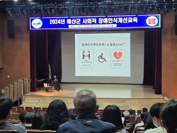 [충청25시] 예산군은 지난 10월 31일 군청 추사홀에서 직원 300여명을 대상으로 사회적 장애인식개선교육을 실시했다고 밝혔다.