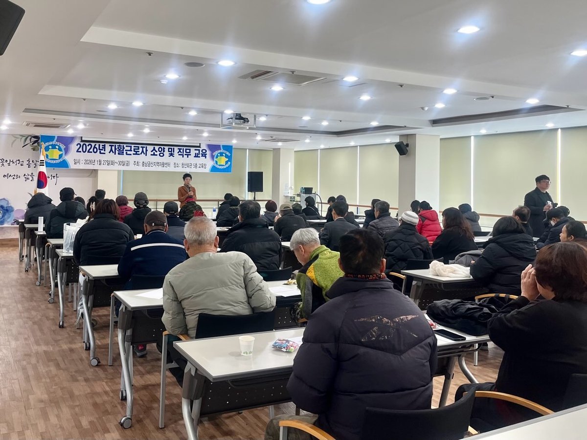 [충청25시] 충남금산지역자활센터는 지난 27일 금산읍 청산회관 5층 교육실에서 자활근로사업 참여자 및 센터 종사자 등 70명이 참석한 가운데 2026년도 자활근로사업 참여자 직무교육에 나섰다.