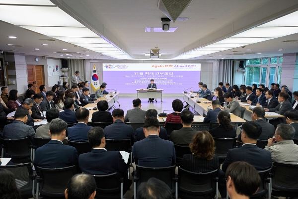 [충청25시] 조일교 아산시장 권한대행은 4일 시청 상황실에서 열린 ‘11월 확대간부회의’에서 간부공무원의 책임감과 중요성을 강조했다.