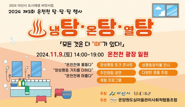 [충청25시] 아산시가 오는 9일 온천천 광장 일대에서 온양온천의 정체성이 담긴 특화축제인 ‘제3회 온천천 탕·탕·탕’을 개최한다.