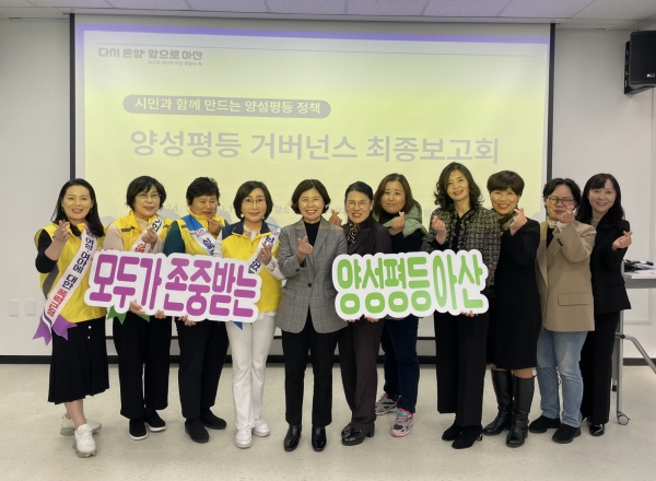 [충청25시] 아산시가 지난 8일 아산시여성커뮤니티센터 나온에서 민간활동가, 공무원, 전문가 등 15명이 참석한 가운데 양성평등 거버넌스 최종 보고회를 개최했다.