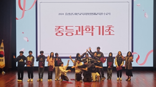 [충청25시] 충청남도아산교육지원청은 지난 9일 아산시청 시민홀에서 영재교육원 수료 학생 186명, 지도교사 48명, 학부모와 내빈 300여명이 참석한 가운데 2024학년도 아산교육지원청영재교육원 수료식을 실시했다.