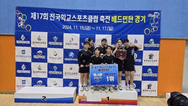 [충청25시] 대전백운초등학교는 11월 15일부터 17일까지 경남 밀양에서 열린 ‘제17회 전국학교스포츠클럽 축전 배드민턴 경기’에서 여자초등부 대전 대표로 참가해 우승을 차지했다고 밝혔다.
