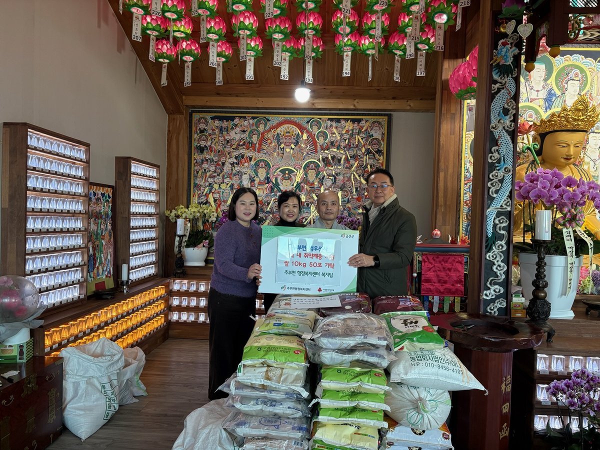 [충청25시] 금산군 추부면 소재 법우선사는 지난 6일 어려운 이웃을 돕기 위해 200만 원 상당 백미 10kg 50포를 추부면에 기탁했다.