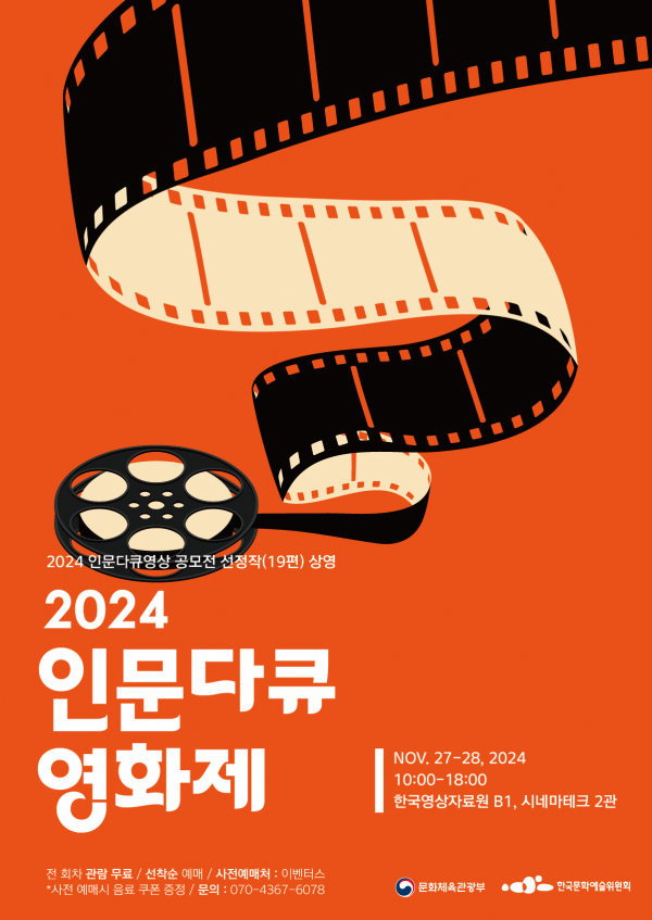 [충청25시] 문화체육관광부는 한국문화예술위원회와 함께 11월 27일과 28일 한국영상자료원에서 ‘2024년 인문다큐영화제’를 열어 올해 제작을 지원한 인문 주제 다큐멘터리 19편 모두를 상영한다.