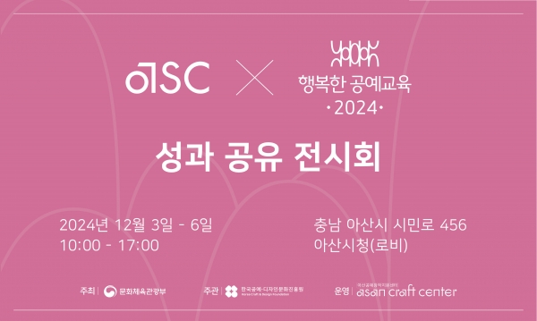 [충청25시] 아산공예창작지원센터가 올 한 해 지역 문화소외계층을 대상으로 한 ‘2024 행복한 공예교육’ 사업의 성과물 전시회를 오는 12월 3일부터 6일까지 4일간 아산시청 로비에서 개최한다.