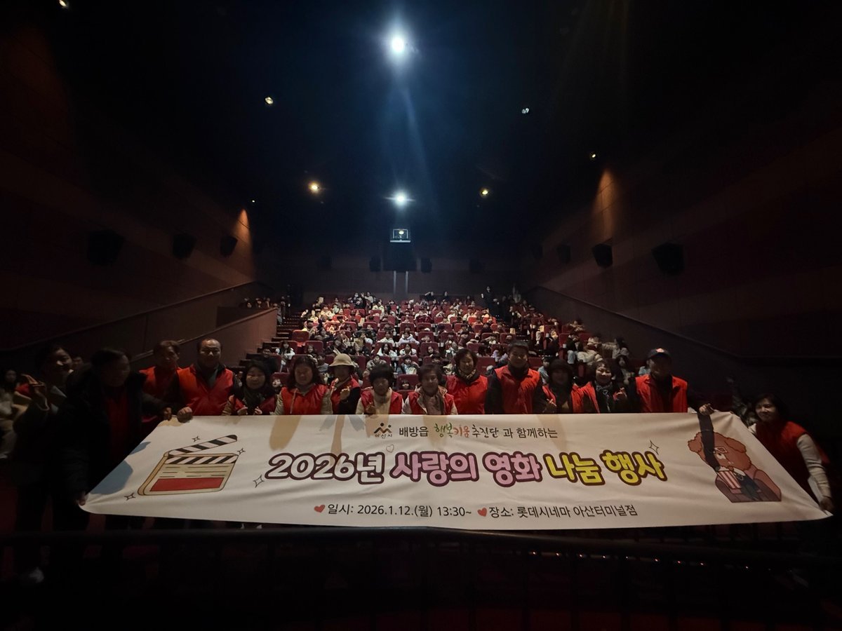 [충청25시] 아산시 배방읍 행복키움추진단은 지난 12일 롯데시네마 아산터미널점에서 배방읍 소재 지역아동센터 아동들을 대상으로 ‘2026년 사랑의 영화 나눔 행사’를 진행했다.