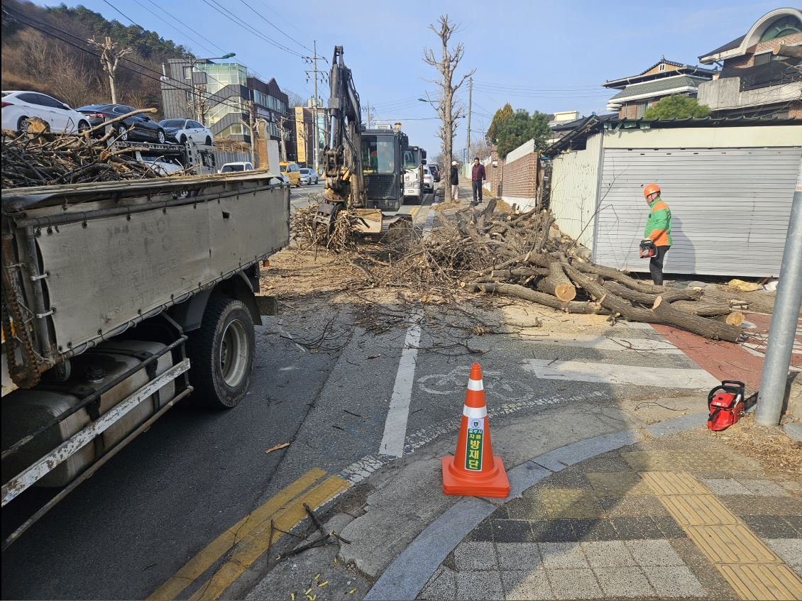 이날 자율방재단은 이동식 들어올림 장비 등을 활용해 도로변에 위치한 위험목을 제거했으며 현장 민원을 신속히 처리해 주민 불편을 해소하고 안전한 생활환경을 유지할 수 있도록 세심하게 작업을 진행했다.