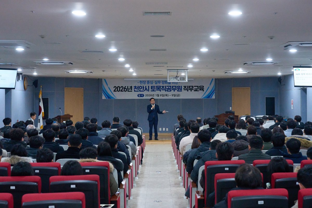 [충청25시] 천안시는 지난 8일부터 9일까지 이틀간 토목직 공무원 140여 명을 대상으로 ‘2026년 토목직 공무원 직무교육’을 실시했다.