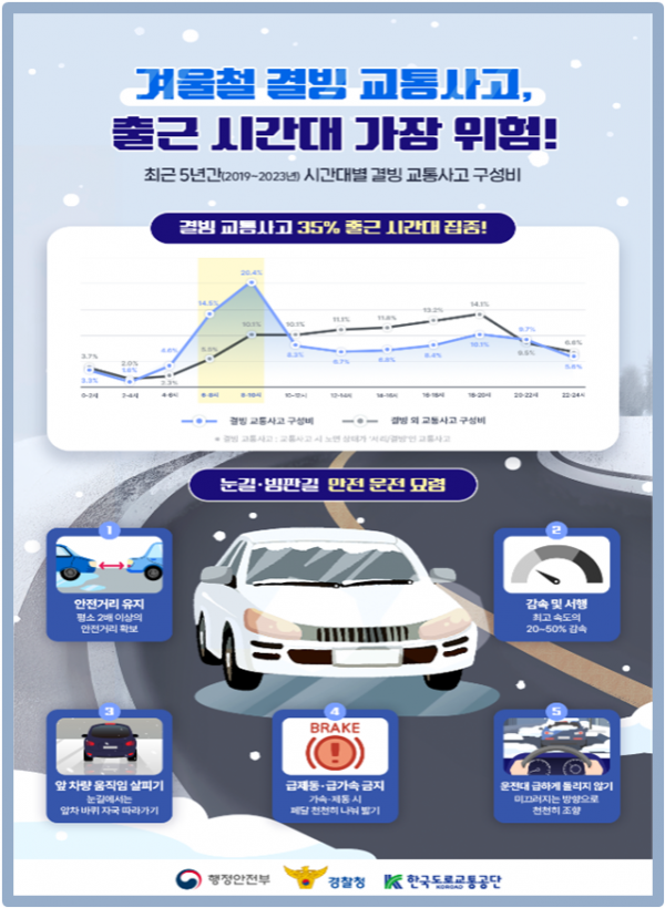 특히 이 시간대에는 밤사이 내린 서리 등이 도로에 얇게 얼어붙으며 살얼음이 생기기 쉬워, 운전자들의 각별한 주의가 필요하다.