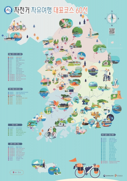 특히 대표코스 60선은 기존 자전거 길을 바탕으로 주요 강과 하천의 지천, 자동차로 접근하기 어려웠던 마을길까지 연결해 우리나라 지역의 구석구석을 자유롭게 방문할 수 있는 여행코스를 포함했다.