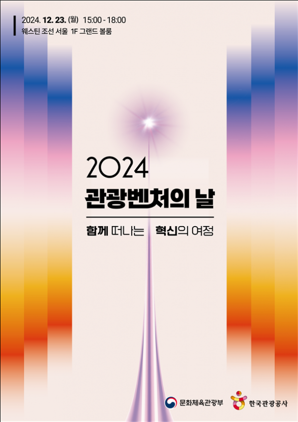 [충청25시] 문화체육관광부는 한국관광공사와 함께 12월 23일 오후 3시, 웨스틴조선 서울에서 ‘2024 관광벤처의 날’ 행사를 개최한다.