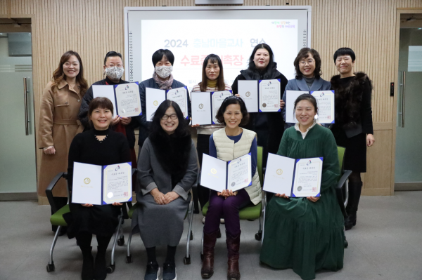 [충청25시] 아산교육지원청은 2024년 12월 23일 아산교육지원청 중회의실에서 2024 마을교사 배움과 성장 연수 이수증 및 위촉장을 마을교사 13명에게 수여했다.
