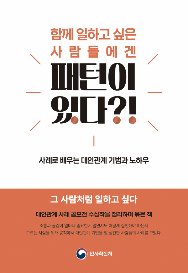 이번 사례집은 수기 공모전에 제출된 중앙행정기관과 지방자치단체 공무원 447명이 경험한 대인관계 성공 사례 중 엄선된 20편이 수록됐다.