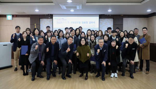 [충청25시] 아산교육지원청은 12월 27일 오전 10시 30분 3층 대회의실에서 2025. 1월 1일 자 아산교육지원청 소속 전입 직원과 교육청 전입 직원 52명을 대상으로 ‘2025. 1월 1일 자 일반직공무원 임용장 교부식’을 실시했다.
