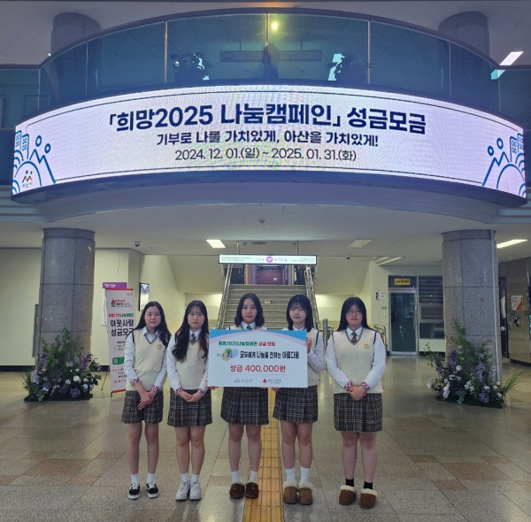 [충청25시] 봉사활동 모임 ‘모나美’ 학생들이 지난 31일 아산시를 방문해 ‘희망2025나눔캠페인’ 성금 40만원을 기부했다.