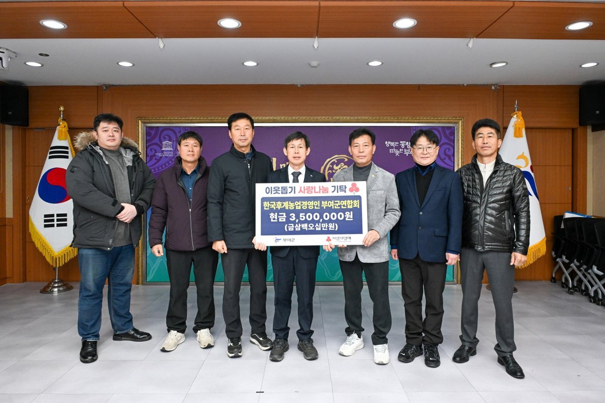 김지태 문화체육복지국장은 “지역 농업 발전에 이바지하는 한국후계농업경영인 부여군 연합회가 꾸준히 따뜻한 나눔을 실천해 주셔서 감사드린다”고 말했다.