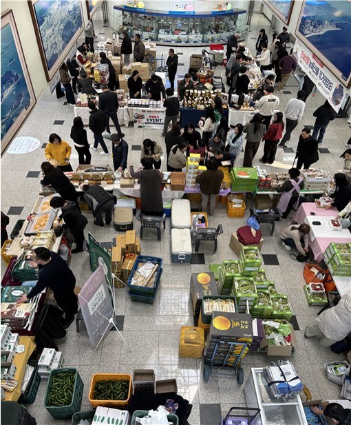 이번 직거래장터는 최근 물가 상승 등 소비 위축으로 판로에 어려움을 겪는 농어가들의 소득 증대를 돕고 소비자에게는 설 명절에 필요한 제수용품과 선물을 직접 구매할 수 있도록 마련한 행사다.