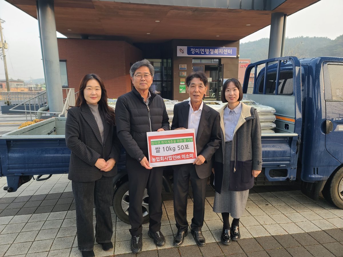[충청25시] 정미면는 지난 29일 농업회사법인 미소미가 지역 내 취약계층을 위해 180만 원 상당의 햅쌀 50포를 기부하며 추운 연말연시에 따뜻한 이웃사랑을 전달했다고 30일 밝혔다.