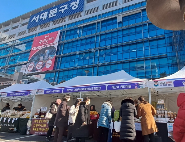 [충청25시] 아산시는 농산물 소비 판로를 개척하고 우수 농·특산물을 홍보하기 위해 16일부터 17일까지 서대문구청에서 열린 ‘설맞이 우수 농·특산물 관외 직거래 장터’에 참여했다.