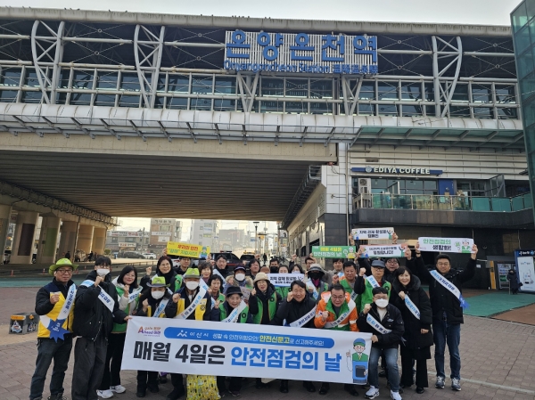 캠페인 참가자들은 온양온천 전통시장과 온양온천역을 방문한 시민들을 대상으로 화재 예방과 겨울철 한파·대설 안전 관리를 위한 전단지를 배부하고 아산시 시민안전보험 안내와 안전신문고 앱 사용 방법을 홍보했다.