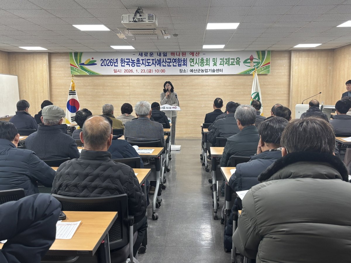 [충청25시] 예산군농업기술센터는 지난 23일 농업기술센터 세미나실에서 각 읍면 농촌지도자 임원 등 60여명이 참석한 가운데 2026년 한국농촌지도자예산군연합회 연시총회 및 과제교육을 개최했다고 밝혔다.