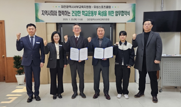 [충청25시] 대전서부교육지원청은 23일 대전 서부교육지원청에서 유성스포츠클럽과 ‘지역사회와 협력하는 건강한 학교 운동부 육성’을 위한 업무협약을 맺었다고 밝혔다.