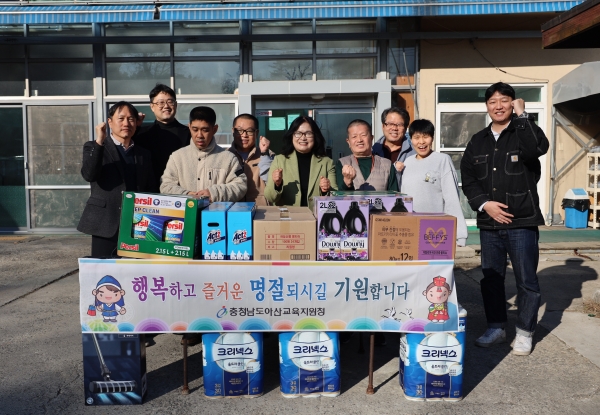 [충청25시] 아산교육지원청 박서우 교육장은 24일 설 명절을 맞아 환경미화, 당직, 사회복무요원, 희망일자리 등 교육 현장을 위해 애쓰고 있는 직원들에게 격려 물품을 전달했다.
