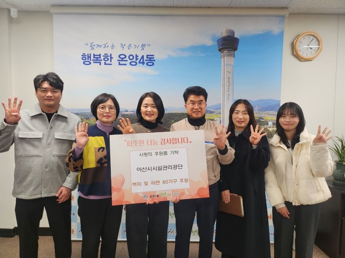 [충청25시] 아산시시설관리공단은 온양4동 행복키움추진단과 협력해 지난 26일 관내 저소득 취약계층 80가구에 백미와 라면을 기탁했다.