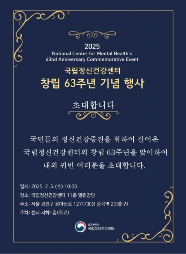 [충청25시] 보건복지부 국립정신건강센터는 2월 5일 오전 10시 국립정신건강센터 11층 열린 강당에서 ‘국립정신건강센터 창립 63주년 기념행사’를 개최했다.