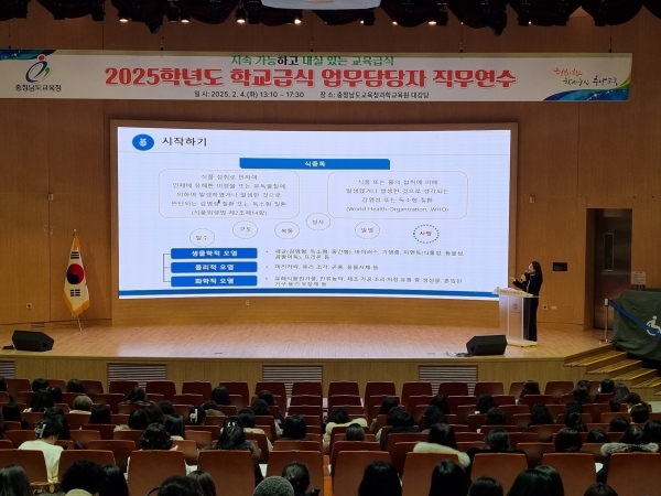 [충청25시] 충남교육청은 2월 4일과 6일 이틀에 걸쳐 충청남도교육청과학교육원 대강당에서 ‘2025년 상반기 학교급식 관계자 직무연수’를 개최해, 2025학년도 학교급식의 전반적인 정책설명과 급식 우수 사례를 공유하는 자리를 마련했다고 밝혔다.