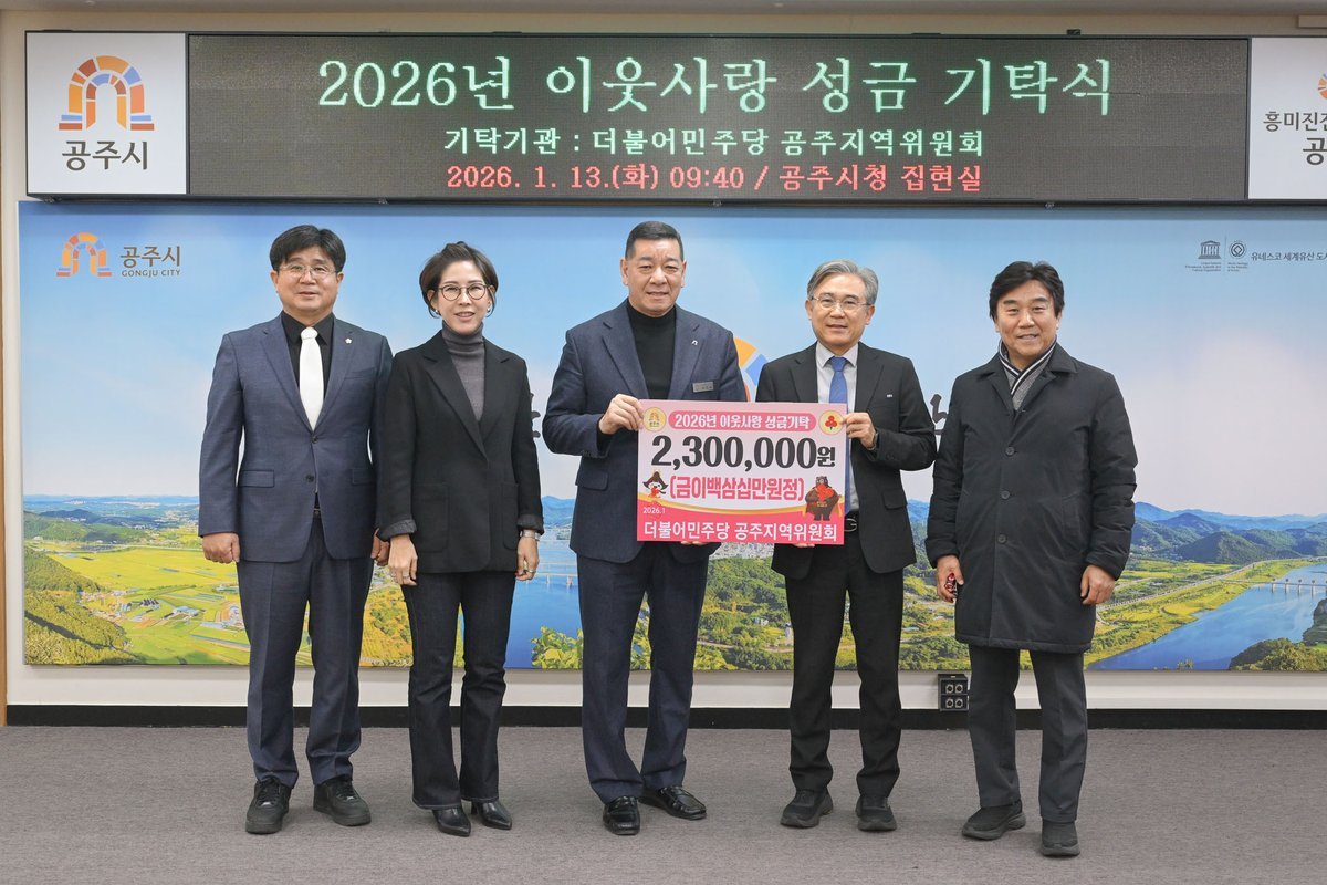 [충청25시] 공주시는 지난 13일 시청 집현실에서 더불어민주당 공주지역위원회가 지역의 어려운 이웃을 돕기 위해 성금 230만원을 기탁했다고 밝혔다.