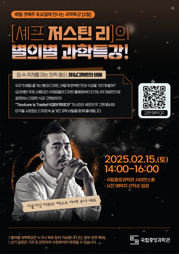 [충청25시] 매월 셋째 주 토요일에 만나는 ‘별의별 과학특강’ 시리즈 2번째 강연이 또 다른 특별한 주제를 가지고 2025년 2월 15일 토요일 오후 2시, 국립중앙과학관 사이언스홀에서 펼쳐질 예정이다.