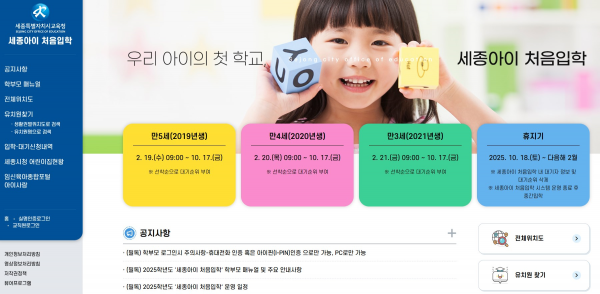 [충청25시] 세종시교육청은 2025학년도 세종시 ‘세종아이 처음입학’을 2월 19일부터 10월 17일까지 진행한다.