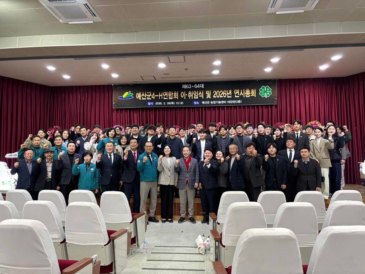 [충청25시] 예산군4-H연합회는 지난 26일 농업기술센터 교육관에서 회원 및 내빈 50여명이 참석한 가운데 예산군4-H연합회장 이, 취임식 및 연시총회를 개최했다고 밝혔다.