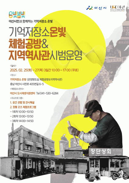 [충청25시] 아산시가 도시재생뉴딜사업으로 조성한 ‘기억저장소 온빛’ 체험공방&지역역사관을 25일부터 3일간 시범 운영한다.